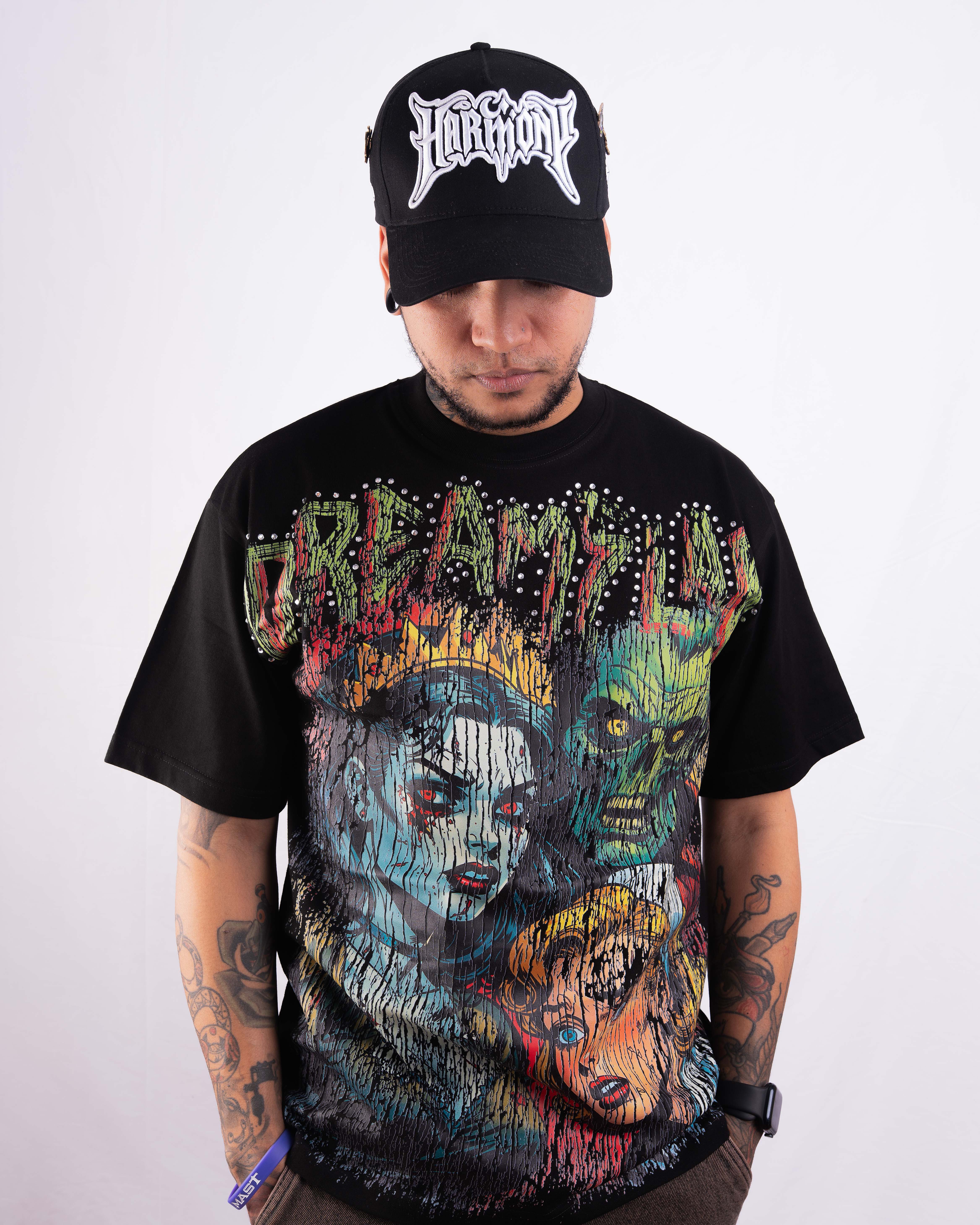 Step into the raw energy of the underground with the “Rebirth” Graphic Tee from DreamsLAB. Crafted from 100% heavyweight cotton, this piece features a distressed multicolor print inspired by 90’s horror comics and street art rebellion. Each graphic is individually screen-printed for a unique cracked texture effect. Oversized fit with dropped shoulders Ribbed neckline for lasting shape Signature “DreamsLAB” front artwork 100% premium cotton Made for those who turn chaos into art.